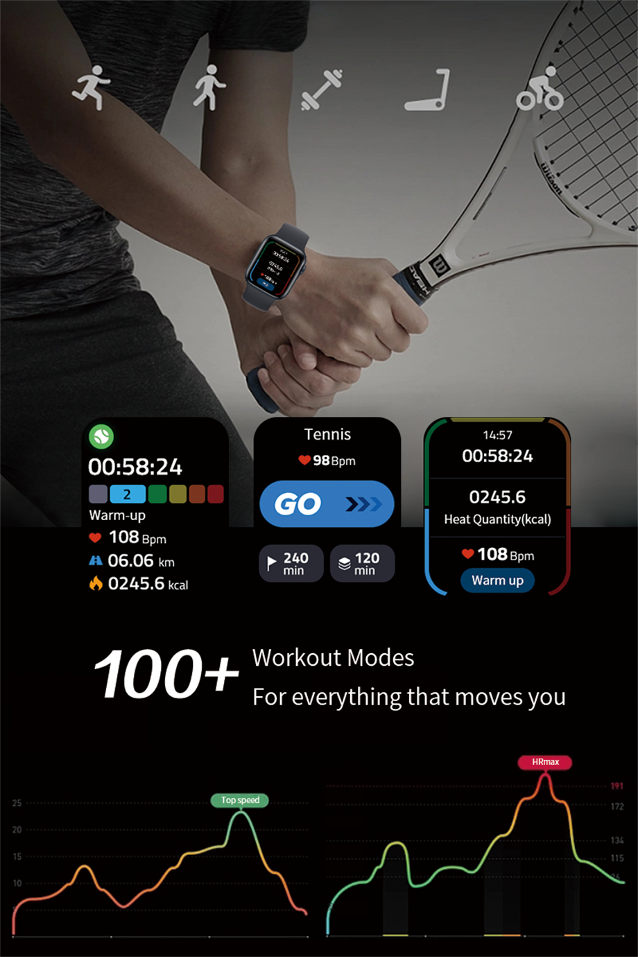 Moduri sportive: Numărul de pași sportivi, recordul de kilometraj sportiv, consumul de carduri, o varietate de moduri sportive.