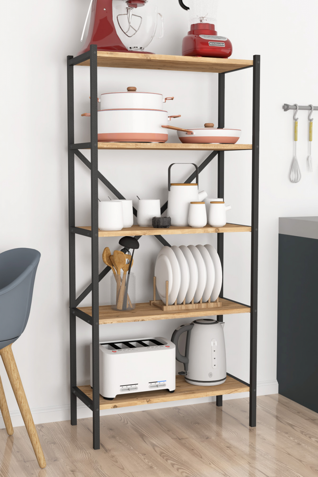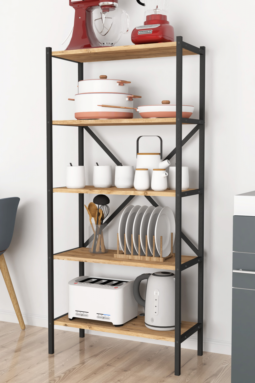 Depozitare generoasă – cele 5 rafturi încăpătoare susțin atât cărți, cât și obiecte decorative de diverse dimensiuni.