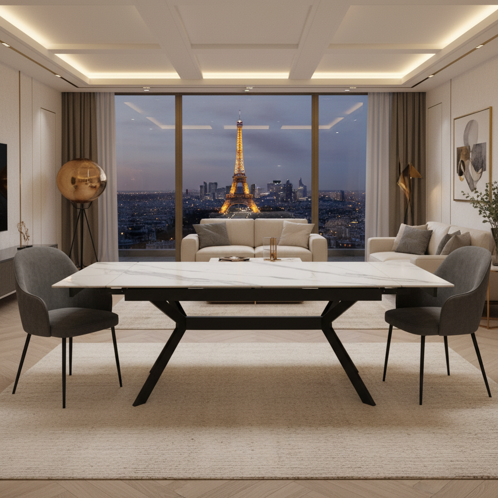 Dimensiunea standard a mesei (înălțime ~75 cm, adâncime 90 cm) asigură un confort optim pentru până la 8 persoane atunci când este complet extinsă, în timp ce forma sa dreptunghiulară o face potrivită pentru majoritatea tipurilor de sufragerii și amenajări moderne. Instalarea este simplă, iar silueta minimalistă completează fără efort stilul contemporan al casei tale.