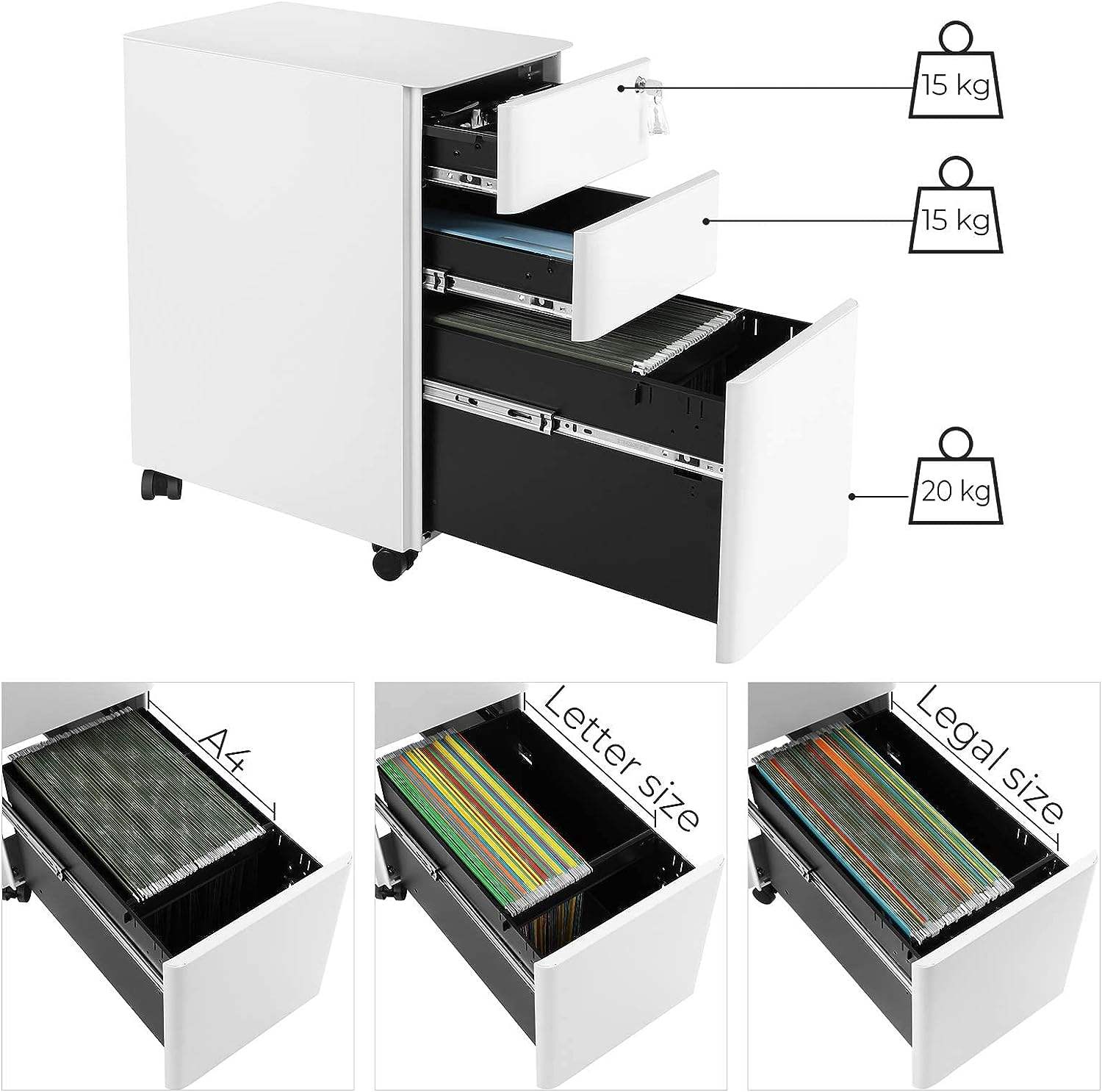 Această casetieră metalică de birou RollBox White30 este construită din oțel robust, garantând rezistență în timp și stabilitate chiar și atunci când este mutată pe roți. Cele două sertare superioare sunt perfect dimensionate pentru a susține până la 15 kg fiecare, iar sertarul inferior spațios poate susține până la 20 kg — ceea ce înseamnă că poți depozita documente dense, dosare A4 sau alte obiecte de birou fără griji.