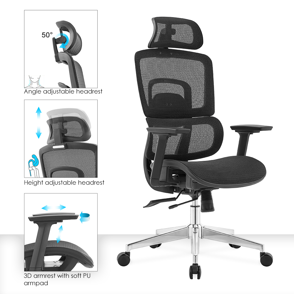 Brate 3D Ajustabile: Bratele ajustabile 3D se pot modifica în înălțime, lățime și unghi, furnizând suport personalizat și reducând presiunea asupra umerilor și a gâtului.