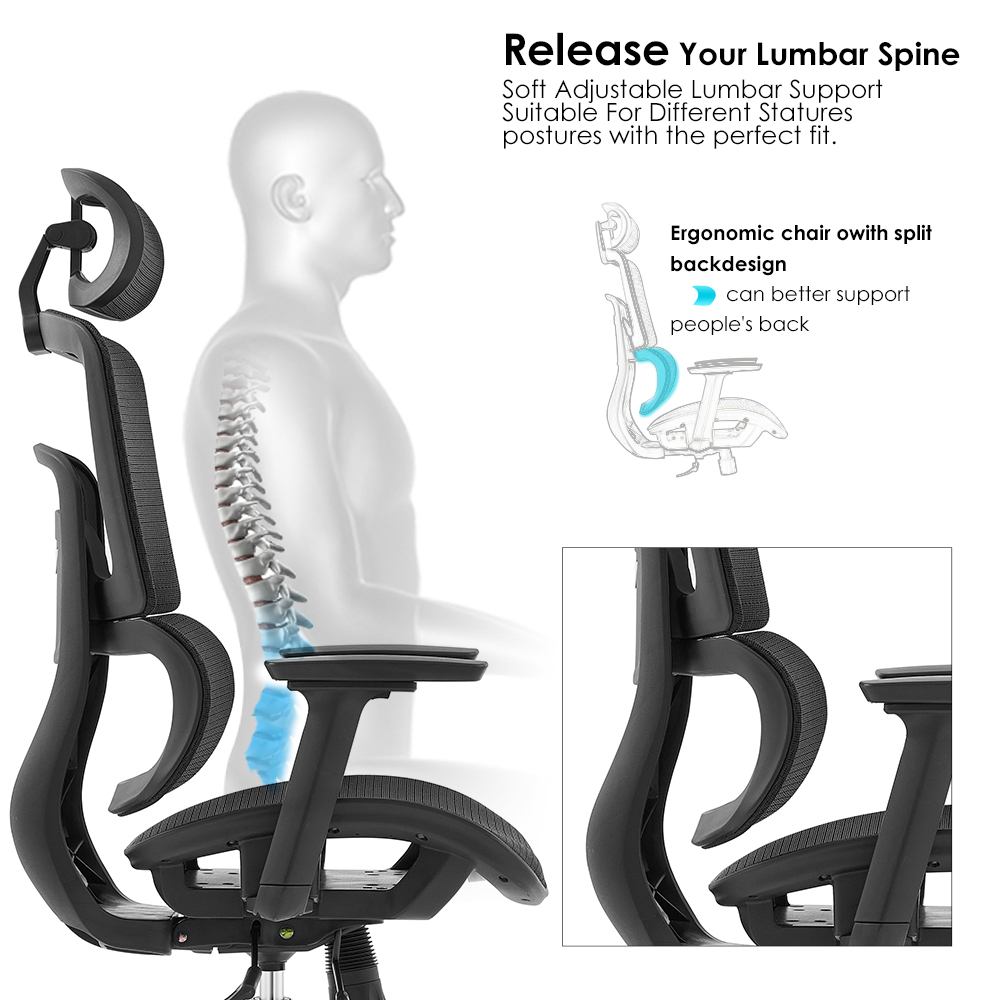 Spătar Ergonomic: Design-ul spătarului din Mesh se mulează pe conturul coloanei vertebrale, oferind suport lombar reglabil și un confort superior pe durata utilizării îndelungate.
